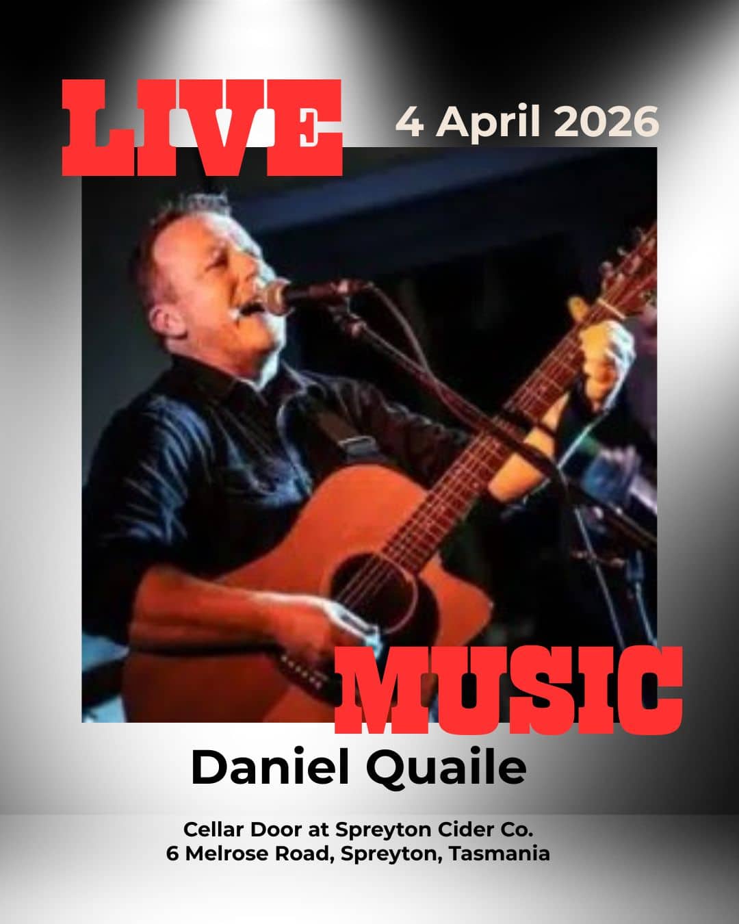 FREE LIVE MUSIC: Spreyton Cidery Thursday, 26 March – 4.30pm – 7pm